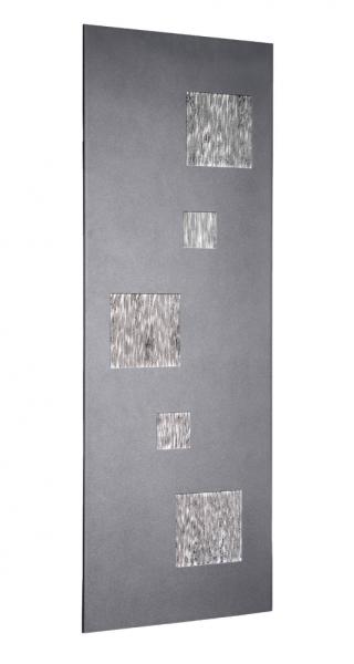 Műszaki adatok: Magasság: 900 mm Szélesség: 500 mm Mélység: 52 mm Szín: antracit Anyaga: acél Fűtőteljesítmény: 600 W Fűtőrudak száma: 17 db Długość całkowita grzałki: 656 mm Fűtőelem hossza: 540 mm Tápkábel hossza: 1,5 m Üzemi feszültség: 230V/50 Hz Védettség: IP44 Sterowanie dotikowe za wysządka LED kijelző Dodatkove zabezpieczenie przed pracą on "dry" A beépíte