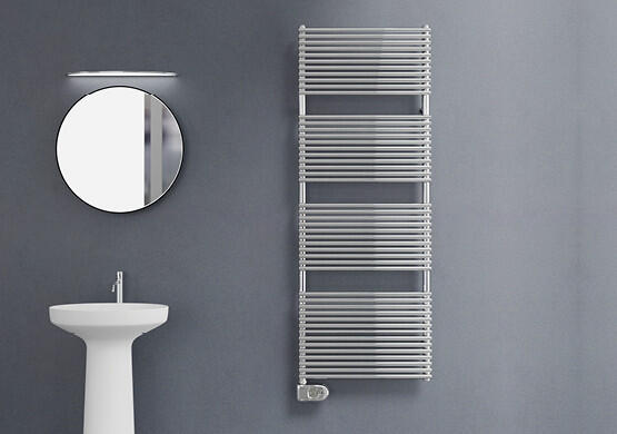 - szélesség: 53 cm- magasság: 50,8 cm- szélesség tengelyekben: 48,4 cm- hőteljesítmény: 75/65/20°C: 138 W- üzemi nyomás: 8 bar- kompatibilis elektromos fűtőberendezéssel- szín: króm A képen a radiátor mintaméretben látható.