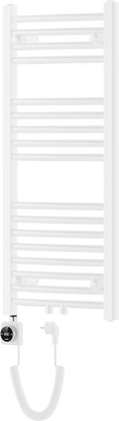 Műszaki adatok: Magasság: 900 mm Szélesség: 400 mm Mélység: 44 mm Fehér szín Anyaga: acél Fűtőteljesítmény: 300 W Fűtőrudak száma: 17 db Długość całkowita grzałki: 438 mm Fűtőelem hossza: 349 mm Tápkábel hossza: 1,5 m Üzemi feszültség: 230V/50 Hz Védettség: IP44 Kormányzás LED kijelzővel Dodatkove zabezpieczenie przed pracą on "dry" A beépített termosztát tartj