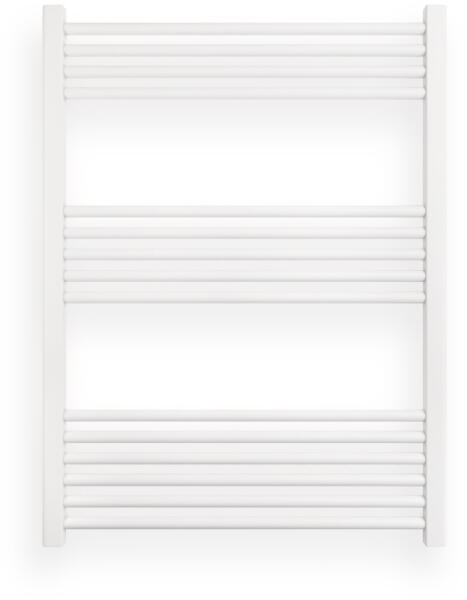 Törölközőszárító radiátor 75 x 100 cm-es méretben, fehér színben. Egyenes kivitel 5 szekcióra osztott csövekkel. A radiátor tartozéka a rögzítő konzolok ésmenetes dugók. A Nero Italia fürdőszobai radiátorok kimagasló gyártási minőségben előállított termékek, első osztályú acél felhasználásával készült, precizíós, nagy tartósságú és egyenletes porfeste