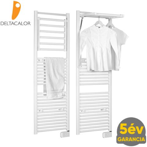 Deltacalor DINAMIC Plus 750 Watt elektromos törölközőszárítós radiátor, nyitható radiátortaggal Olasz design, mindig száraz tapintású törölközők és kellemes meleg. Forradalmi kialakításának köszönhetően 6 felső radiátor tag, 2 db gázrugóval megtámasztva, kihajtható a függőleges radiátor síkból. A szabadalmaztatott csukló szelepek, kihajtott állapotban lévő ra