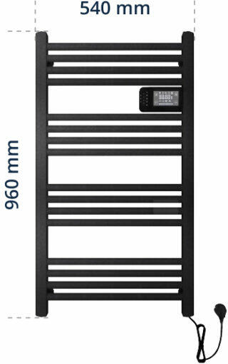BVF KOBE elektromos törölközőszárító radiátor programozható termosztáttal SZÁRAZ TECHNOLÓGIÁS (nincs benne folyadékfeltöltés) elegáns fürdőszobai fűtés 500W teljesítménnyel. A legtöbb átlagos méretű 1-4m2) fürdőszobában önálló fűtés kialakítására is alkalmas. A készülékbe épített digitális termosztát lehetővé teszi a törölközőszárító programoz
