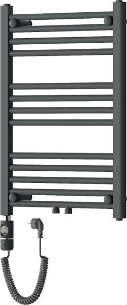 Műszaki adatok: Magasság: 700 mm Szélesség: 500 mm Mélység: 30 mm Szín: antracit Anyaga: acél Fűtőteljesítmény: 300 W Fűtőrudak száma: 13 Długość całkowita grzałki: 426 mm Fűtőelem hossza: 310 mm Tápkábel hossza: 1,5 m Üzemi feszültség: 230V/50 Hz Védettség: IP44 Sterowanie dotikowe za wysządka LED kijelző Dodatkove zabezpieczenie przed pracą on "dry" A beépített