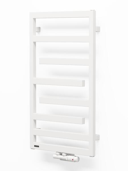 - méretek: 88 x 50 cm - üzemi nyomás: 800 kPa - 5 cm csatlakozási távolság az alsó középső csatlakozásnál - 47 cm csatlakozási távolság a fűtőkollektorok függőleges tengelyében elhelyezkedő alsó csatlakozáshoz - hőteljesítmény (75/65/20°C): 361W - elektromos fűtőberendezés felszerelésének lehetősége - javasolt fűtőteljesítmény: 400W - szín: fehér (RAL 9016)