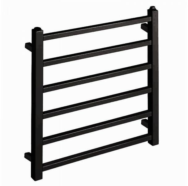A FADO EL 1 elektromos törölközőszárító radiátor, használatra kész, kompakt elektromos fűtőberendezés, minőségi FOCUS fűtőpatronnal szerelve, glikollal töltve, -30 °C-ig fagyálló. Alsó csatlakozással rendelkezik, az alsó csatlakozások távolsága: 500 mm. Színe: RAL 9005 / mély fekete. Magasság: 595 mm, szélesség: 530 mm, fűtőparton teljesítmény: 300 W. Egy egysze