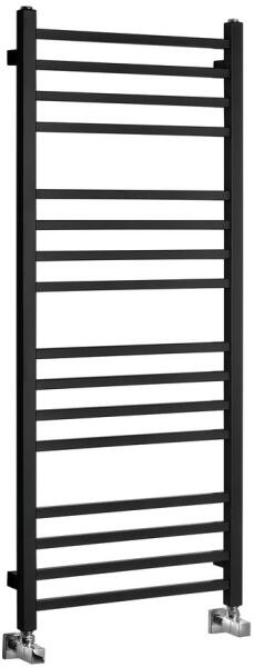 Fürdőszobai törölközőszárítós radiátor 500 x 1200 mm-es méretben, fekete színben | Kedvező áron | Készletről | Gyors kiszállítással Egyenes kivitel 4 szekcióra osztott csövekkel (5-5-4-4). A radiátor tartozéka a fali rögzítéshez szükséges 4 db konzol. A Nero Italia fürdőszobai radiátorok kimagasló gyártási minőségben előállított termékek, első osztályú ac