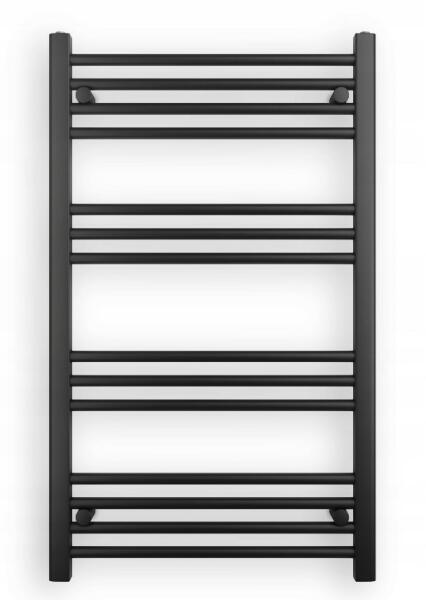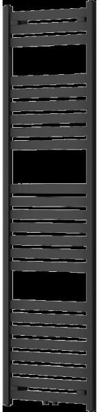 Egyenes fűtőtest központi csatlakozással fekete-matt színben. Méretek 450 x 1600 mm. A test tartalmaz egy dugót, egy szellőzővel ellátott dugót és 4 db rögzítőelemet. Fűtőrúd csatlakoztatásának lehetősége.