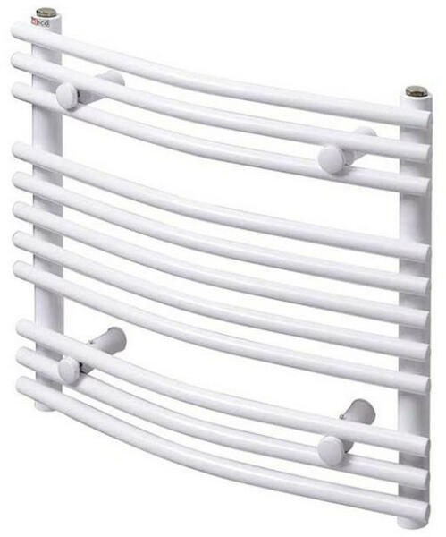 Radeco Sonia íves törülközőszárító radiátor 550x496 mm, fehér A1-500/SL Garancia: 5 év Anyag: acél Súly: 4,8 kg Szélesség: 550 mm Magasság: 496 mm Mélység: 120-140 mm Max. üzemi nyomás: 10 bar Max. üzemi hőmérséklete: 95 fok Kötési távolság: 500 mm Hőteljesítmény: 90/70/20 420W Íves kivitel Alsó csatlakozással, oldalsó bekötés Alapszín: fehér RAL 9016 Tartoz