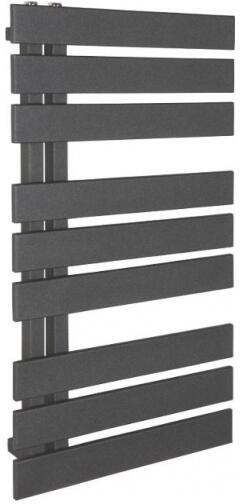 Törölközőszárító radiátor 60 x 90 cm-es méretben, fekete színben. Egyenes kivitel 3 szekcióra osztott csövekkel (5-4-4). A radiátor tartozéka a rögzítő konzolok és menetes dugók. A Nero Italia fürdőszobai radiátorok kimagasló gyártási minőségben előállított termékek, első osztályú acél felhasználásával készült, precizíós, nagy tartósságú és egyenletes