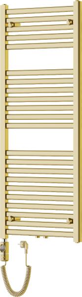 Műszaki adatok: Magasság: 1200 mm Szélesség: 500 mm Mélység: 40 mm Szín: arany Anyaga: acél Fűtőteljesítmény: 600 W Fűtőrudak száma: 22 db Długość całkowita grzałki: 656 mm Fűtőelem hossza: 540 mm Tápkábel hossza: 1,5 m Üzemi feszültség: 230V/50 Hz Védettség: IP44 Sterowanie dotikowe za wysządka LED kijelző Dodatkove zabezpieczenie przed pracą on "dry" A beépített