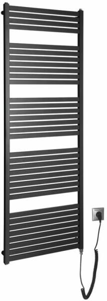 Aqualine Tondi-E elektromos fürdőszobai radiátor 60x169 cm, 800W, matt fekete DE496T Garancia: 24 hónap Jótállás: 2 év Súly: 24,50 kg Anyag: acél Szélesség: 600 mm Magasság: 1690 mm Teljesítmény: 800 W Fűtési lehetőség: radiátorba integrált elektromos fűtés Kivitel: radiátor / elektromos ( fűtőpatront tartalmazza) Forma: H-forma Szín: matt fekete Az elektromos fűtőtest