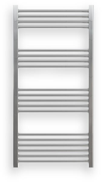 Ecoradco törölközőszárító radiátor 60 x 120 cm-es méretben, krómozott felülettel. Egyenes kivitel 4 szekcióra bontott csövekkel. A radiátor tartozéka a 3 db rögzítő konzol és a menetes dugók. Anyaga minőségi rozsdamentes acél, többszörös króm bevonattal, ami ellenáll a nedvességnek és folyamatos magas páratartalomnak, valamint esztétikus megjelenést, és hosszú, k