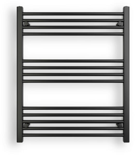 Ecoradco törölközőszárító radiátor 75 x 90 cm-es méretben, fekete színben. Egyenes kivitel 3 szekcióra bontott csövekkel. A radiátor tartozéka a 3 db rögzítő konzol és a menetes dugók. Működtethető elektromos fűtőbetéttel is. Paraméterek: Magasság: 90 cm Teljes szélesség: 75 cm Kötéstávolság: 70.5 cm Teljesítmény: 475 W Kcal: 408 Bekötés: alsó, belső menetes