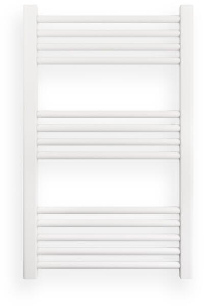Törölközőszárító radiátor 50 x 80 cm-es méretben, fehér színben. Egyenes kivitel 3 szekcióra osztott csövekkel (4-4-4). A radiátor tartozéka a 3 db rögzítő konzol és a menetes dugók. A Nero Italia fürdőszobai radiátorok kimagasló gyártási minőségben előállított termékek, első osztályú acél felhasználásával készült, precizíós, nagy tartósságú és egyenl