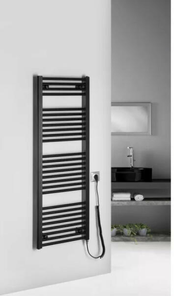 Aqualine Direct-E Elektromos fürdőszobai radiátor, fűtőpatronnal. Márka: Aqualine Széria: Direct-e Szín: Matt fekete Szélesség: 450 mm Magasság: 1320 mm Fűtési típus: Elektromos Teljesítmény: 400 W Alapanyag: Acél