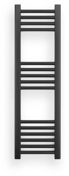 Törölközőszárító radiátor 30 x 100 cm-es méretben, fekete színben. Egyenes kivitel 3 szekcióra osztott csövekkel. A radiátor tartozéka a 3 db rögzítő konzol és a menetes dugók. A Nero Italia fürdőszobai radiátorok kimagasló gyártási minőségben előállított termékek, első osztályú acél felhasználásával készült, precizíós, nagy tartósságú és egyenletes fe