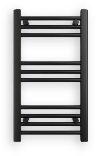 Fürdőszobai törölközőszárítós radiátor 400 x 700 mm-es méretben, fekete színben | Kedvező áron | Készletről | Gyors kiszállítással Egyenes kivitel 3 szekcióra osztott csövekkel (4-3-3). A radiátor tartozéka a fali rögzítéshez szükséges 4 db konzol. A Nero Italia fürdőszobai radiátorok kimagasló gyártási minőségben előállított termékek, első osztályú acél