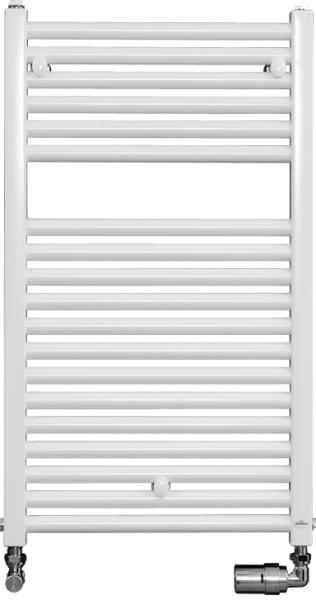 Fehér színű egyenes csőradiátor. A Sanica törölközőszárító radiátor egyszerre biztosítja a fürdőszoba ideális fűtését és a törölközők szárítását. A törölközőszárítók, amelyek minden helyiségben felszerelhetőek, nagy méretválasztékban elérhetőek. A standard fehér színű modell RAL 9010-es színben készül. A hengeres csövekből tervezett összes Sanica