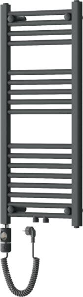 Műszaki adatok: Magasság: 900 mm Szélesség: 400 mm Mélység: 30 mm Szín: antracit Anyaga: acél Fűtőteljesítmény: 300 W Fűtőrudak száma: 17 db Długość całkowita grzałki: 426 mm Fűtőelem hossza: 310 mm Tápkábel hossza: 1,5 m Üzemi feszültség: 230V/50 Hz Védettség: IP44 Sterowanie dotikowe za wysządka LED kijelző Dodatkove zabezpieczenie przed pracą on "dry" A beépíte