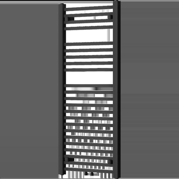 Egyenes radiátor központi csatlakozással. Méretek 450 x 1200 mm. A ház tartalmaz egy dugót, egy szellőzővel ellátott dugót és 4 db rögzítőelemet.