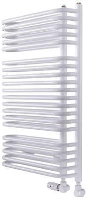 RADECO Fürdőszobai törölközőszárítós csőradiátor, A4-500/U új megjelenésű törölközőszárítós csőradiátor, 1060x535 mm méretben, Cikkszám: A4-500/U Gyártmány: RADECO Magasság: 1060mm Szélesség: 535mm Kötés távolság: 500 mm Bekötés: 4db1/2 belső menetes csatlakozó 90/70/20° 850W 75/65/20° 680 W 75/65/24° 612 W Maximális üzemi nyomás: 10 bar Jótállás