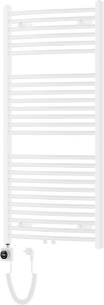 Műszaki adatok: Magasság: 1200 mm Szélesség: 600 mm Mélység: 56 mm Fehér szín Anyaga: acél Fűtőteljesítmény: 600 W Fűtőrudak száma: 25 db Długość całkowita grzałki: 629 mm Fűtőelem hossza: 540 mm Tápkábel hossza: 1,5 m Üzemi feszültség: 230V/50 Hz Védettség: IP44 Kormányzás LED kijelzővel Dodatkove zabezpieczenie przed pracą on "dry" A beépített termosztát tart