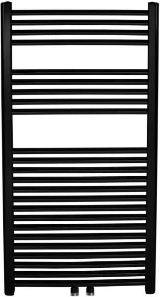 Egyenes fűtőtest központi csatlakozással fekete-matt színben. Méretek 600 x 1800 mm. A ház tartalmaz egy dugót, egy szellőzővel ellátott dugót és 4 db rögzítőelemet. Fűtőrúd csatlakoztatásának lehetősége.