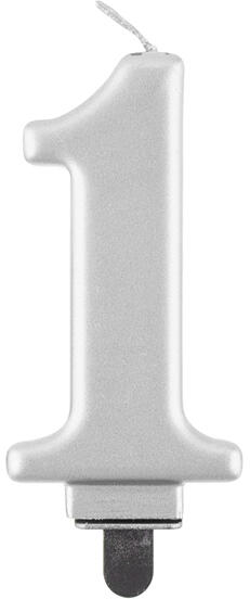 Torta gyertya. 1-es szám. Metál ezüst színben, 8 cm magas.