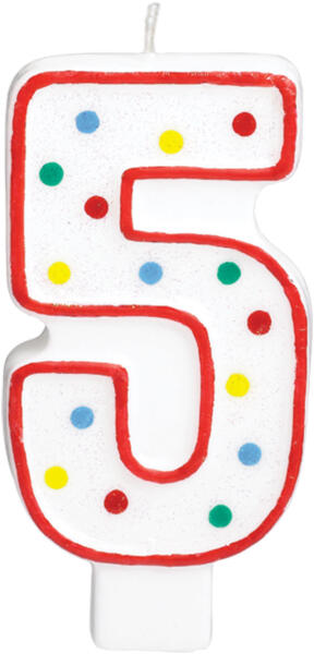 Nagy születésnapi szám gyertya 5 mennyiség: 1 db méret: kb 13 cm szín: fehér pötyökkel Milyen lenne a születésnapi ünnepség gyertyás torta nélkül? Díszítse ki a születésnapi tortát az ünnepelt korának megfelelő szám gyertyával . Ezek a gyertyák biztosan mindenkinek örömet szereznek.