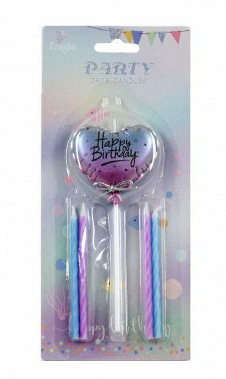 Tortagyertya Happy Birthday kék/lila 4dbx8cm 1dbx12cm 625373 Befoglaló méretek 9x1x20.5 cmAnyaga paraffin