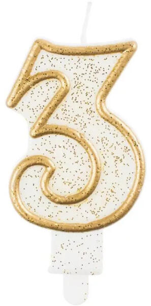Gold, Arany csillámos számgyertya, tortagyertya 3-as Méret: 6,5 cm
