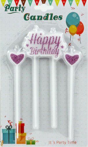Tortagyertya Happy Birthday rózsaszín 3 részes 616821 Befoglaló méretek 14x0.5x23 cmAnyaga pararffin