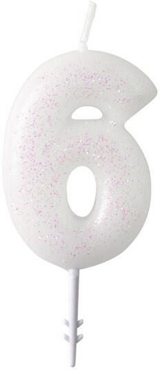 White, Fehér csillámos gyertya 6-os 6,5 cm Mérete: 6,5 cm