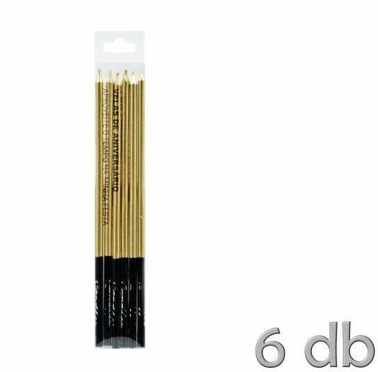 Gyertya metál arany 6db 15,5cm 239446 Gyertya metál arany 6db 15,5cmBefoglaló méretek 3x0.5x16 cmAnyaga paraffin