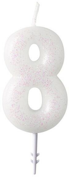 White, Fehér csillámos gyertya 8-as 6,5 cm Mérete: 6,5 cm