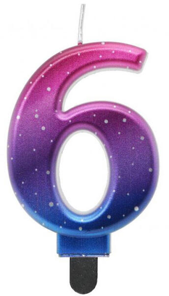 Színes 6-os Night Sky Metallic számgyertya, tortagyertya Színes számgyertya, tortagyertya 6-os Méret: 8 cm