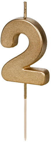 2-es számú születésnapi gyertya arany színben, mérete kb. 4,5 cm
