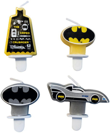 Gyertya - Batman 4 db A gyertyák minden ünneplés elengedhetetlen részei. Ezek a Batman szuperhős motívumával díszített torta gyertyák eredeti kiegészítők, amelyek garantáltan örömet okoznak az ünnepeltnek és vendégeinek. · mennyiség : 4 db