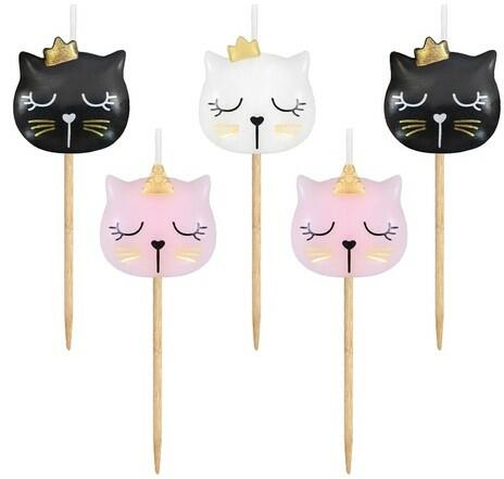 Cuki cicafejek tortába szúrható gyertyák fekete, fehér és rózsaszín színben. Dobjátok fel a születésnapi torta vagy muffin-ok hangulatát a megfelelően hosszú és jól meggyújtható kanócokkal rendelkező fapálcikákra erősített cica gyertyákkal. Mérete: 3 x 7 cm. Tartalom: 5 db cica fej gyertya rózsaszín, fekete és fehér színben.