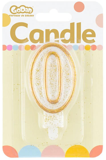 Torta gyertya. 0-ás szám. Fehér, arany szegéllyel. Magassága: 8cm.