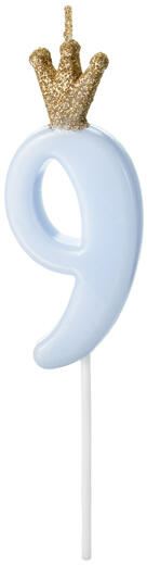 Pearly Light Blue, Kék számgyertya, tortagyertya 9-es Méret: 7 cm