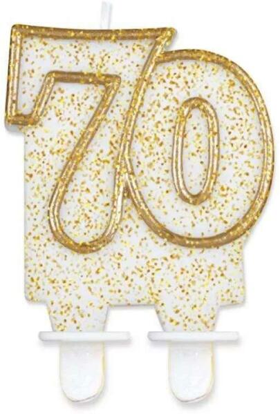 Gold, Arany csillámos tortagyertya, számgyertya 70-es Méret: 8 cm