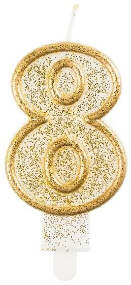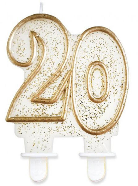 Gold, Arany csillámos tortagyertya, számgyertya 20-as Méret: 8 cm