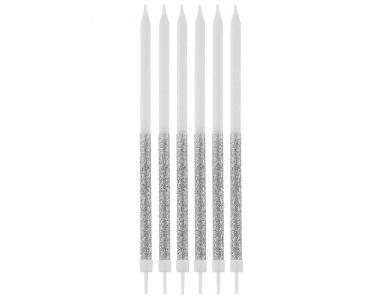 Silver Glitter, Ezüst tortagyertya, gyertya szett 16 db-os Csillámos! Méret: 14,5 cm 16 darab/csomag