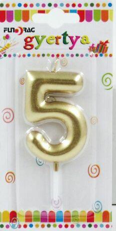 Tortagyertya 5 évszámos arany 6cm 221502 Tortagyertya 5 évszámos arany 6cmBefoglaló méretek 7x1x15 cmAnyaga paraffin