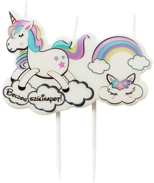 Boldog szülinapot feliratú, unikornis mintájú gyertya, mely segítségével minden kisgyerek a tortájára egy különleges világot varázsolhatunk. Tulajdonságok: Anyaga: paraffin és műanyag pálcika A gyertya magassága a pálcikával együtt: 9,5 cm