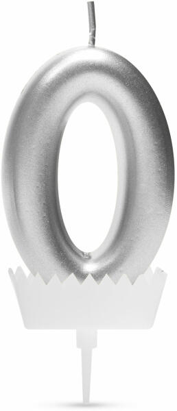 Tortagyertya szám 6 x 3 cm "0" - ezüst Szám alakú tortagyertya. Méret:6 x 3 cmSzám:0