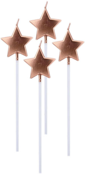 4 darabos rose gold színű, csillag alakú gyertya , mely segítségével minden ünnepelt tortájára egy különleges világot varázsolhatunk. Használhatjuk díszítésként tortákra, süteményekre vagy éppen az otthon készített muffinokra is. Tulajdonságok: Anyaga: viasz és műanyag pálcika A gyertyák magassága a pálcikával együtt: 14 cm A csomagban 4 darab gyertya található.