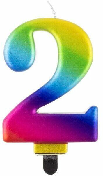 A varázslatos szivárvány színben pompázó, 2-es számot ábrázoló születésnapi gyertya a legszebb kiegészítője lehet a buliknak ha valami különlegességre vágyunk. Mérete: 8 cm.