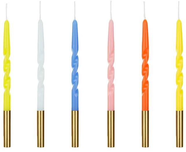 Születésnapi gyertya színes csavart 14cm Mix Ez a gyertyák keveréke különböző színeket tartalmaz, amelyek spirálisan csavarodnak, így a tortáknak és desszerteknek dinamikus és szórakoztató megjelenést kölcsönöznek. A gyertyákat könnyedén a tortába lehet szúrni, és játékos kialakításuknak köszönhetően minden ünneplés kedvenc elemévé válnak. mennyiség: 6 db /